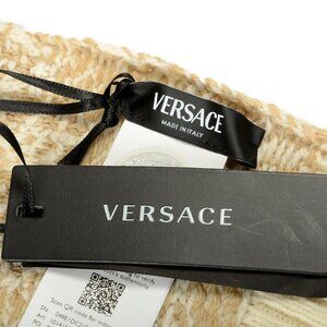 Versace Women's Beige Barocco Print Heavy Knitted 100% Wool Scarf One Size