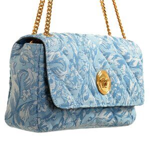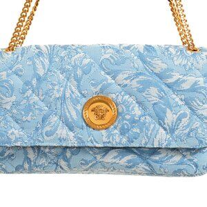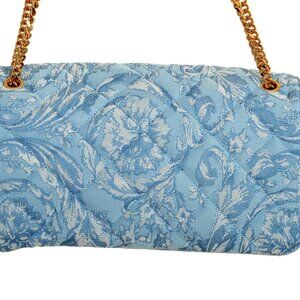 Versace Women's Blue Jacquard Gold Medusa Quilted Handbag Shoulder Bag