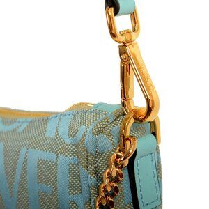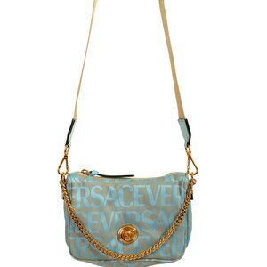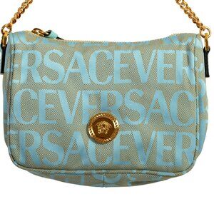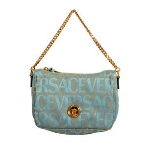 Versace Women's Blue Logo Print Gold Medusa Small Hobo Handbag Shoulder Bag