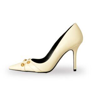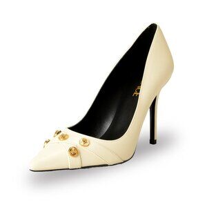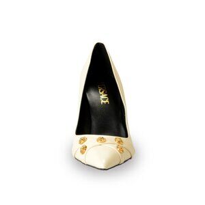 Versace Women's Gold Medusa Beige 100% Leather Heeled Pumps Shoes US 10 IT 40