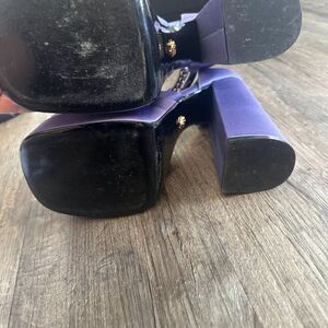 The Medusa Aevitas pumps from Versace are a lesson in statement glamour. They're made from purple satin with towering double platform soles and slender ankle straps that are embellished with crystals and Medusa charms.
