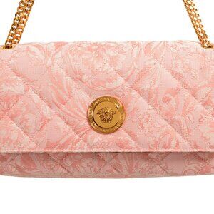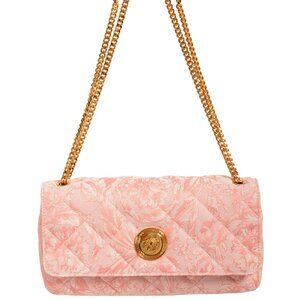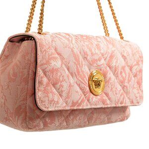 Versace Women's Pink Jacquard Gold Medusa Quilted Handbag Shoulder Bag