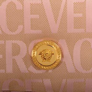 Versace Women's Pink Logo Print Gold Medusa Small Hobo Handbag Shoulder Bag