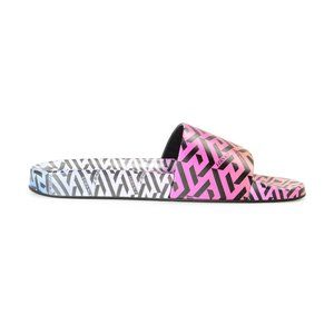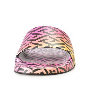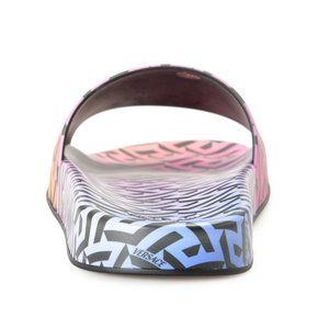 VERSACE WOMEN'S RAINBOW LOGO PRINT MULTI-COLOR POOL SLIDE FLIP FLOPS SHOES