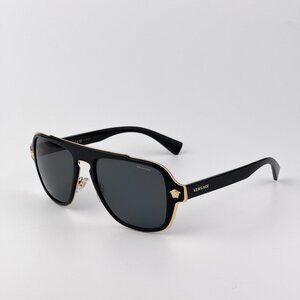 The Versace VE2199 100281 sunglasses bring a bold, masculine edge to the classic aviator style. Featuring a sleek black metal frame and dark grey polarized lenses, these sunglasses offer both high fashion and everyday functionality — reducing glare while providing full 100% UV protection.