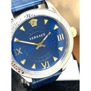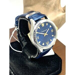 Versace Women's Watch VE2S00122 Hellenyium Swiss Quartz Blue Dial Leather Band $795 (H4362Y)
