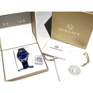 Versace Wome'ns Watch VE2S00122 Hellenyium Swiss Quartz Blue Dial Leathe…