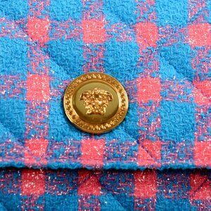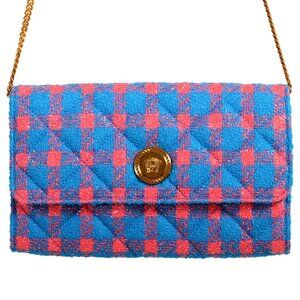 Versace Women's Wool Lurex Jacquard Gold Medusa Quilted Clutch Shoulder Bag
