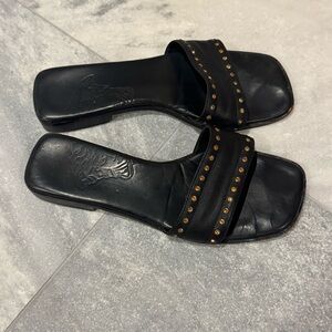 Versace Y2K Black Leather Rhinestone Trim Slides Medusa size 39