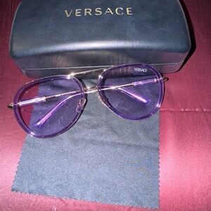 Versace aviators in light purple tint lens and gold hardware, worn twice comes with box and case.
