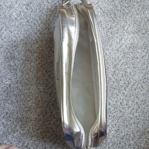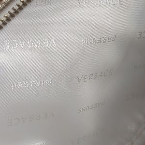 Zip closure Versace bag measures 9" x 5.5" x 3". No stains on white interior