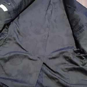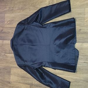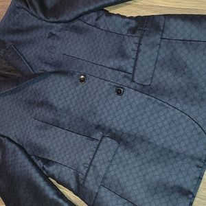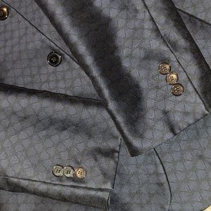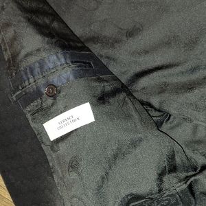 Beautiful Versace suit jacket. The inside has beautiful detailing. It's had to capture on camera. Dark navy blue withs trisngles throughout. No flaws.