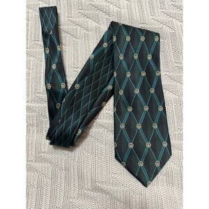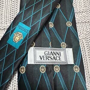 Versace green and black medusa head plaid Italian silk tie. Previously loved and in excellent used condition. Non smoking and pet free house.