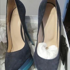 Versace suede platforms Authentic w/ box Pre owned in mint condition I would rate 9/10. Msrp$1095 very stylish two toned patent and suede. Selling because I had back injury and I can’t walk in them.