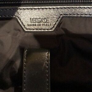 Versace like new black Greca travel bag gold accents nylon magnet close 17x14x7
