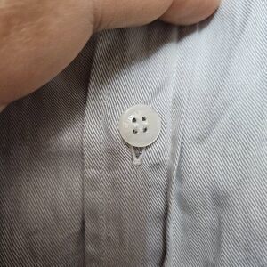 Excellent pre-loved condition Versace long-sleeved button-down shirt for men size 42. Have small rips in the very bottom of the shirt shown in the photos.