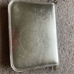 This is a cute piece and will hold your license,makeup and credit cards. This holding case has some discoloration and wear however still user friendly.