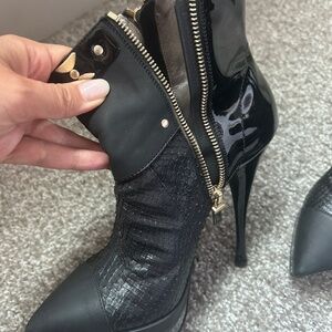 Snakeskin leather boots. Heel height 12 cm. Have worn couple times