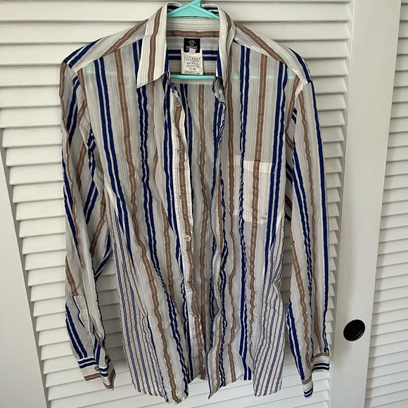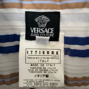 Super cute Versace Jeans Couture button down shirt. Labeled a L mens I believe but I would say it’s more like a small! if you’re normally an xs or s this is a super cute oversized button down!!
