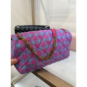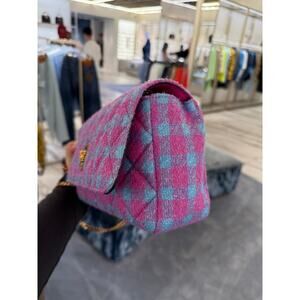 Unused with dust bag, retail 2500, fabric and leather mixed design
