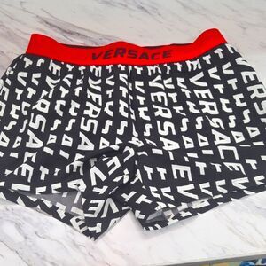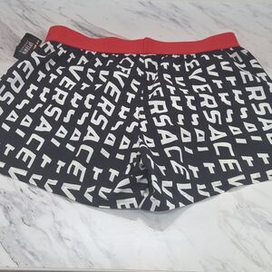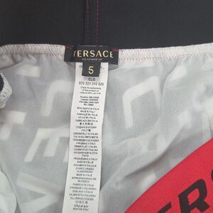 Versace Black and White Swim Shorts with Red Waistband