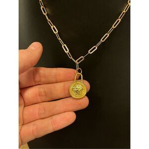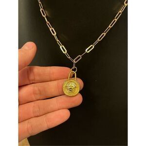 Authentic Versace Pendant on a NON BRAND 14 inch paper clip gold plated choker.