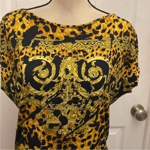 Versace Gold and Black Sheath Dress with Dolman Sleeves, M