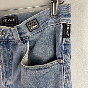 Cut/Fit: Likely a Straight Leg, Relaxed/Comfort Fit with a High-Rise (a common cut for vintage Versace).