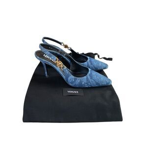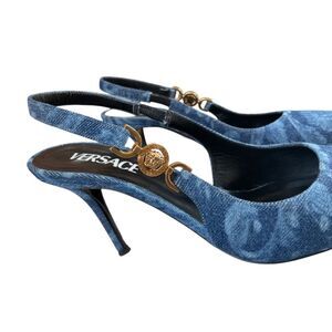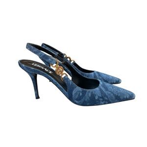 Fun pair of Medusa Denim Slingback Pumps by Versace