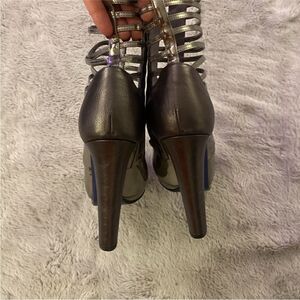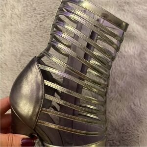 Versace Silver High Heel Ankle cut out Boots, US8,5