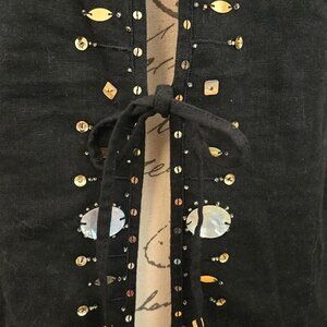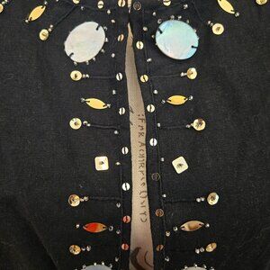Versailles Black Linen Jacket with Beads and Mother of Pearl, Sz 14
