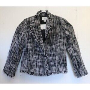 Versailles Blazer Womens Sz 8 Grey Black Tweed Fringe Work Office Casual Jacket