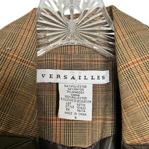 This Versailles blazer features a timeless brown plaid pattern, perfect for adding a touch of sophistication to any outfit.