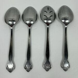 Versailles Stainless Serving Spoons Slotted MCM 8" MSI Flatware Japan Floral