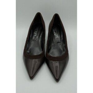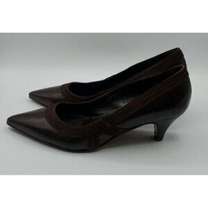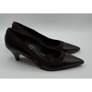 Versani Women's Brown Leather Croc with Suede Trim Heels Size 9.5 B