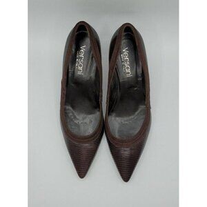 Up for Consideration is this Beautiful pair of VERSANI Brown Croc with Suede Trim Heels. They are in Excellent condition only worn for a couple hours ~ REFER TO ALL PICS. Leather Upper, Leather Soles. Size 9.5 B Made in Italy Pictures are of actual item and also part of Description.