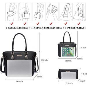 Size: Tote bag: 16 * 6 * 18 inches, Medium handbag: 11 * 4 * 10 inches, Wallet: 7.5 * 1 * 4 inches