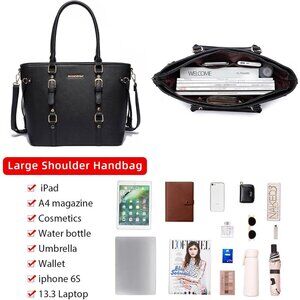Features: This set includes a spacious tote, a medium-sized purse, and a convenient wallet—crafted from soft PU leather with smooth stitching. The upgrade hardware and durable zipper ensure longevity. Features an adjustable, removable shoulder strap and a secure golden buckle for extra safety. The elegant design matches any outfit and is perfect for dating, traveling, working, or shopping.