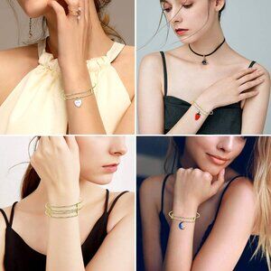 Features: This set includes 60 adjustable wire bangles made of smooth, high-quality alloy steel. The open-ended design makes them easy to fit most wrists comfortably, and their sleek, shiny gold finish adds a touch of elegance. Great for customizing with charms, pendants, or personal touches to create your unique style.