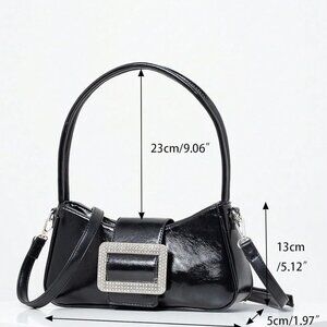 Versatile Black Rhinestone Buckle Shoulder Handbag — Your go-to accessory for adding a touch of glamour.