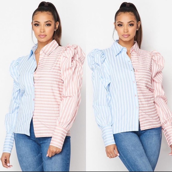 Medium striped (gender reveal) blouse that’s sexy and can be worn by anyone! NWOT