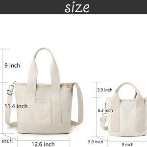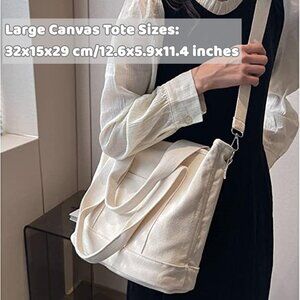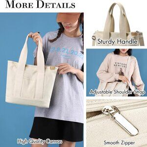 Features: This cute, all-match canvas tote has a sleek design with multiple pockets inside and a front zippered pocket to keep your essentials organized. The detachable adjustable shoulder strap makes it super versatile—wear it crossbody, on your shoulder, or as a top handle. The smooth zipper and quality canvas feel durable yet comfy, perfect for daily errands, work, or a casual day out.