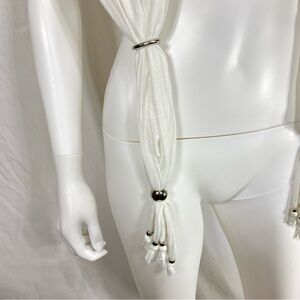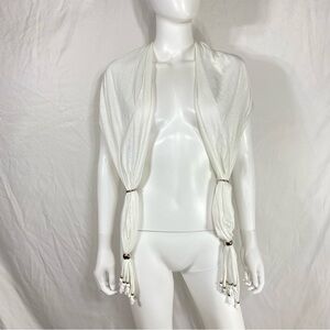 Can be worn with decal to the front with the fringed edges draped across your back or worn like a shawl with the hanging decal as a back accent.