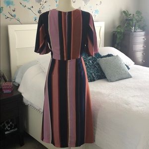 LAVENDER MULTI STRIPED SHORT SLEEVE TIE-FRONT MIDI DRESS. Looks great with boots, sandals or heels. Never worn, new without tags. No trades