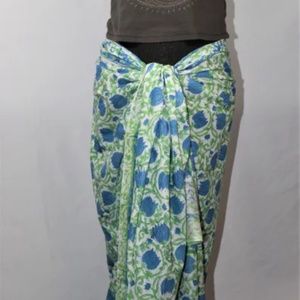 Versatile Floral India Print 100% Cotton Fabric: May be used as sarongs/skirts/Dresses, Beach Cover-Ups, Scarves, tablecloths or runners or throws. 100% Cotton, White, Green, Blue, Floral Hand-Block Print. 45 X 79 Inches.