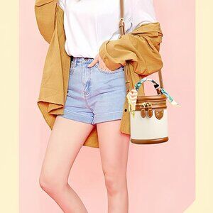Features: This cute mini bucket bag may be compact, but it’s surprisingly roomy—perfect for carrying your wallet, phone, keys, sunglasses, and makeup without cramming. The secure zipper keeps everything safe. With a sleek faux leather finish and a trendy colorblock pattern, it makes a stylish statement. The top handle with ribbon wrap offers a soft grip, and the detachable shoulder strap gives you multiple ways to carry—wear it as a chic handbag, crossbody, or clutch. Ideal for commuting, errands, or adding a pop of style to any outfit.