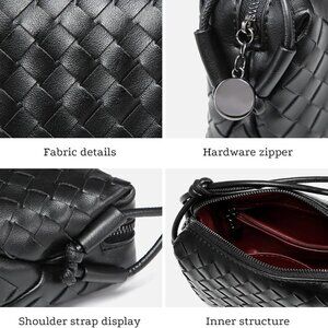 Versatile Mini Crossbody Camera Bag — Stylish Woven Design, Black Vegan Leather