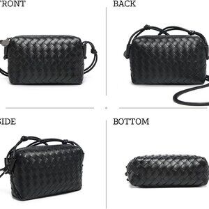 Versatile Mini Crossbody Camera Bag - Stylish Woven Design, Black Vegan Leather