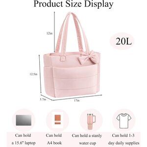 Versatile Pink Puffer Tote Bag for Work, Travel & Gym - 15.6" Laptop Fit