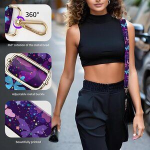 Versatile Purple Butterfly Bag Strap: 1.5-Inch Wide and Adjustable